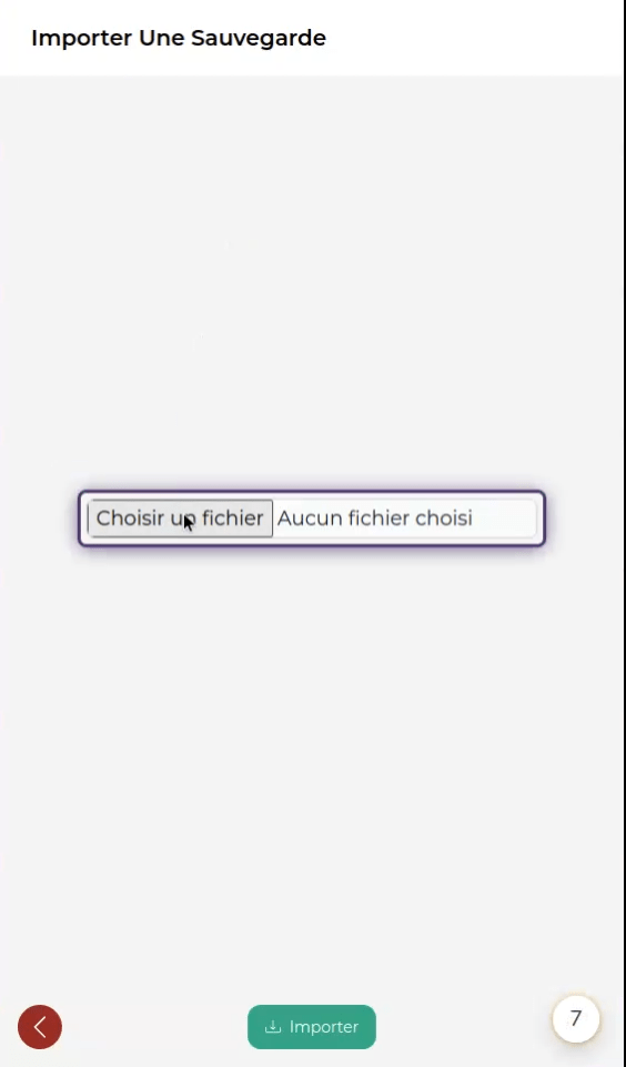 Cliquez sur Choisir un fichier et sélectionnez votre fichier d'import que vous aurez préalablement copié sur votre téléphone, puis cliquez sur Importer.