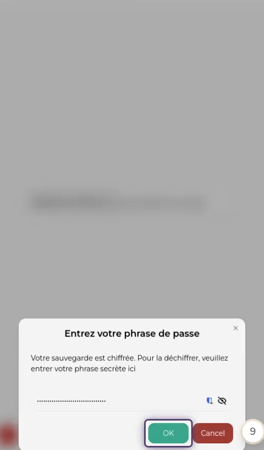 Si votre fichier est chiffré, la clé de chiffrement vous sera demandé. Entrez la clé puis cliquez sur OK.
