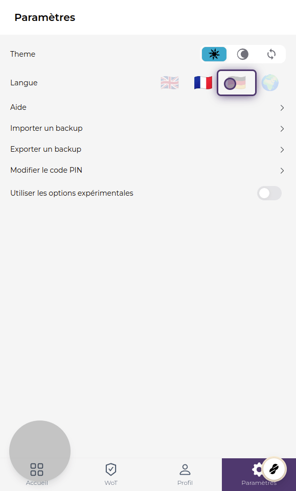 Activer les options expérimentales pour obtenir plus de paramètres. Vous pourrez notamment créer plus d'identités, ou activer l'ouverture automatique du scanner à l'ouverture de l'application.