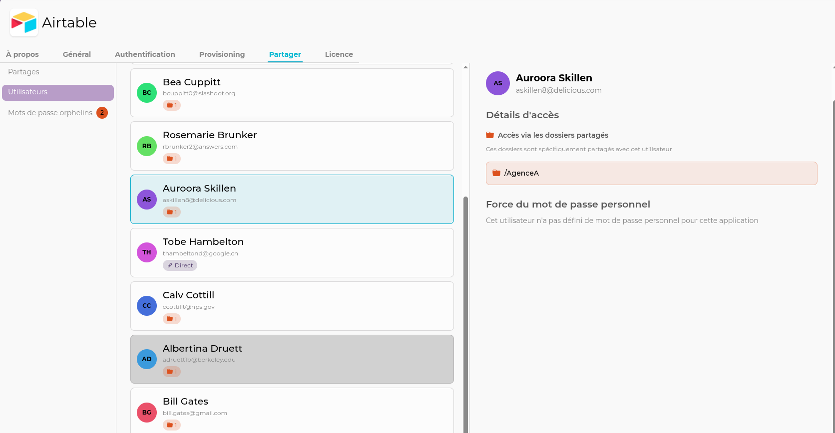 Je peux ensuite affecter un gérant sur le dossier AgenceA et un autre sur le dossier AgenceB. Je peux autoriser des utilisateurs sur toute une agence, ou sur le clientA uniquement, etc.