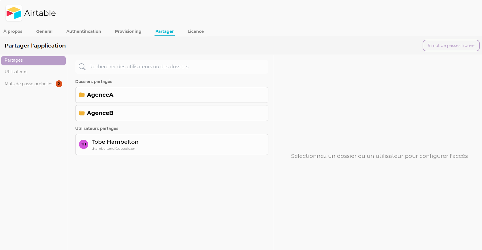 • Partager l'application avec des dossiers, des utilisateurs