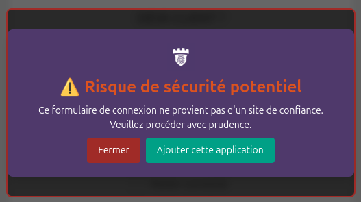L'utilisateur peut cliquer sur le bouton "Fermer" pour ignorer l'avertissement et se connecter sur le site web en connaissance de cause.