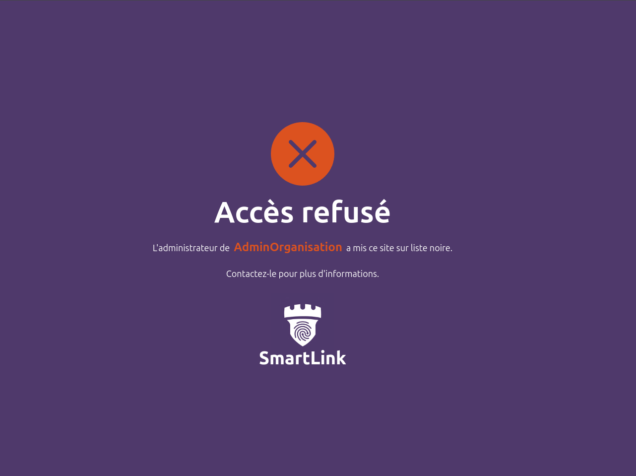 Les administrateurs de votre SmartLink peuvent également bloquer complètement l'accès à certains sites, cela bloquera entièrement le site, pas seulement les formulaires de connexion :