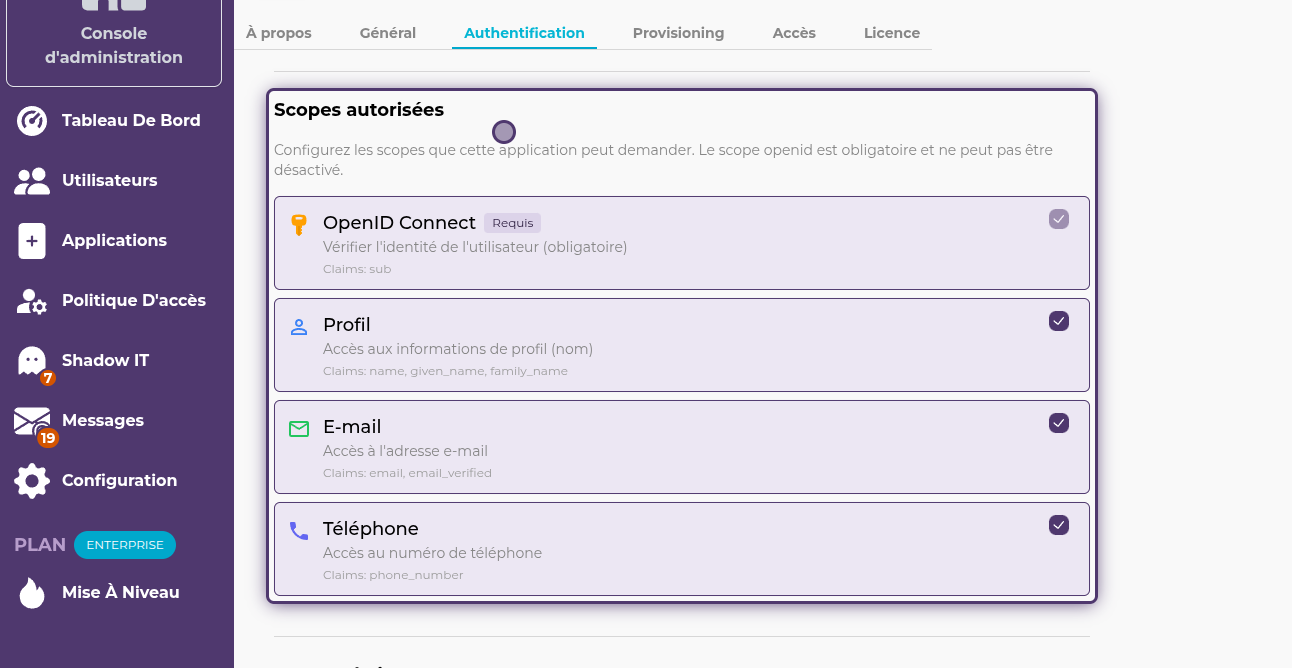 Configurez vos applications de manière à pouvoir vous connectez via OIDC :