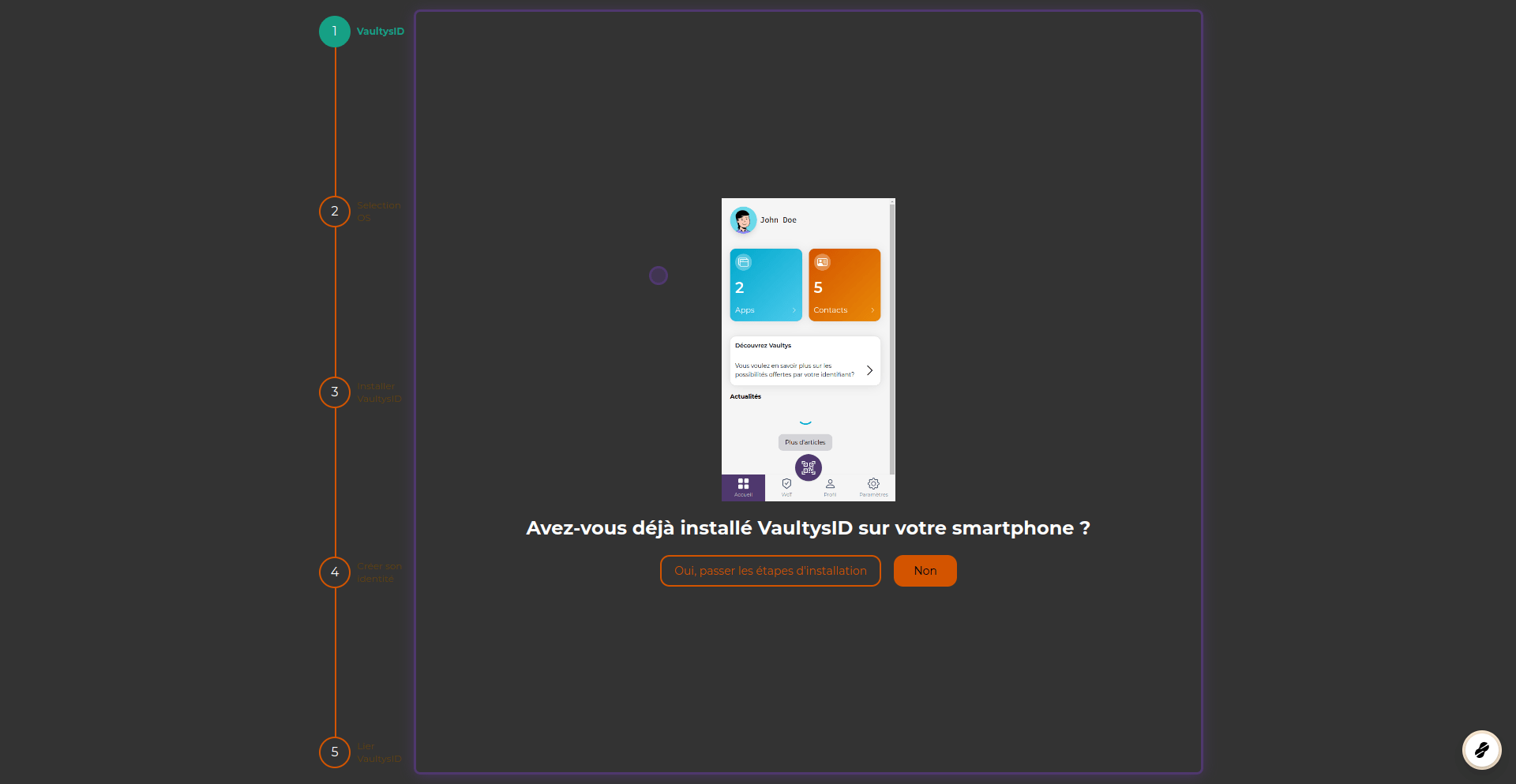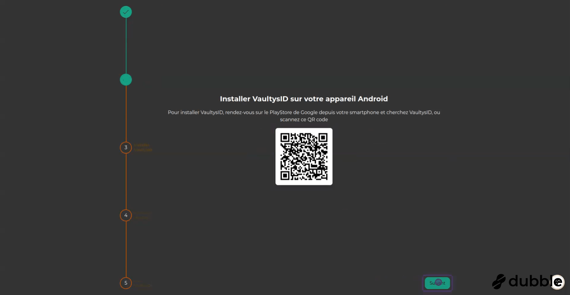 然后按照说明在您的智能手机上安装VaultysID。您也可以扫描屏幕上显示的QR码直接转到应用程序下载页面。